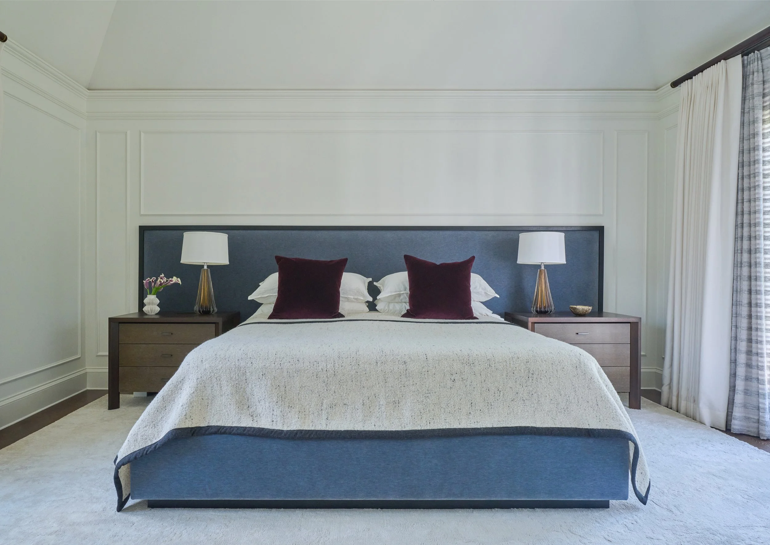 A meticulously executed restoration and addition to this 1920s center-hall colonial resulted in a beautiful blend of varying design styles and periods. Curated furnishings spanning French Deco, Biedermeier and mid-century lend an eclectic mix of depth and character. Architectural elements including original plaster moldings were faithfully restored to honor the home’s rich heritage.